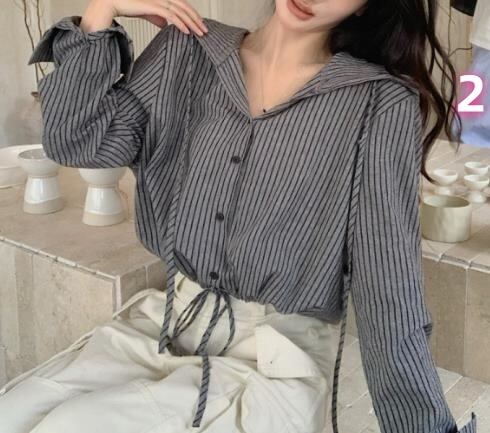 2024春秋新作 トップス 女 レディース 長袖 帽子付け ボーダー柄 シャツ ブラウス コート アウター