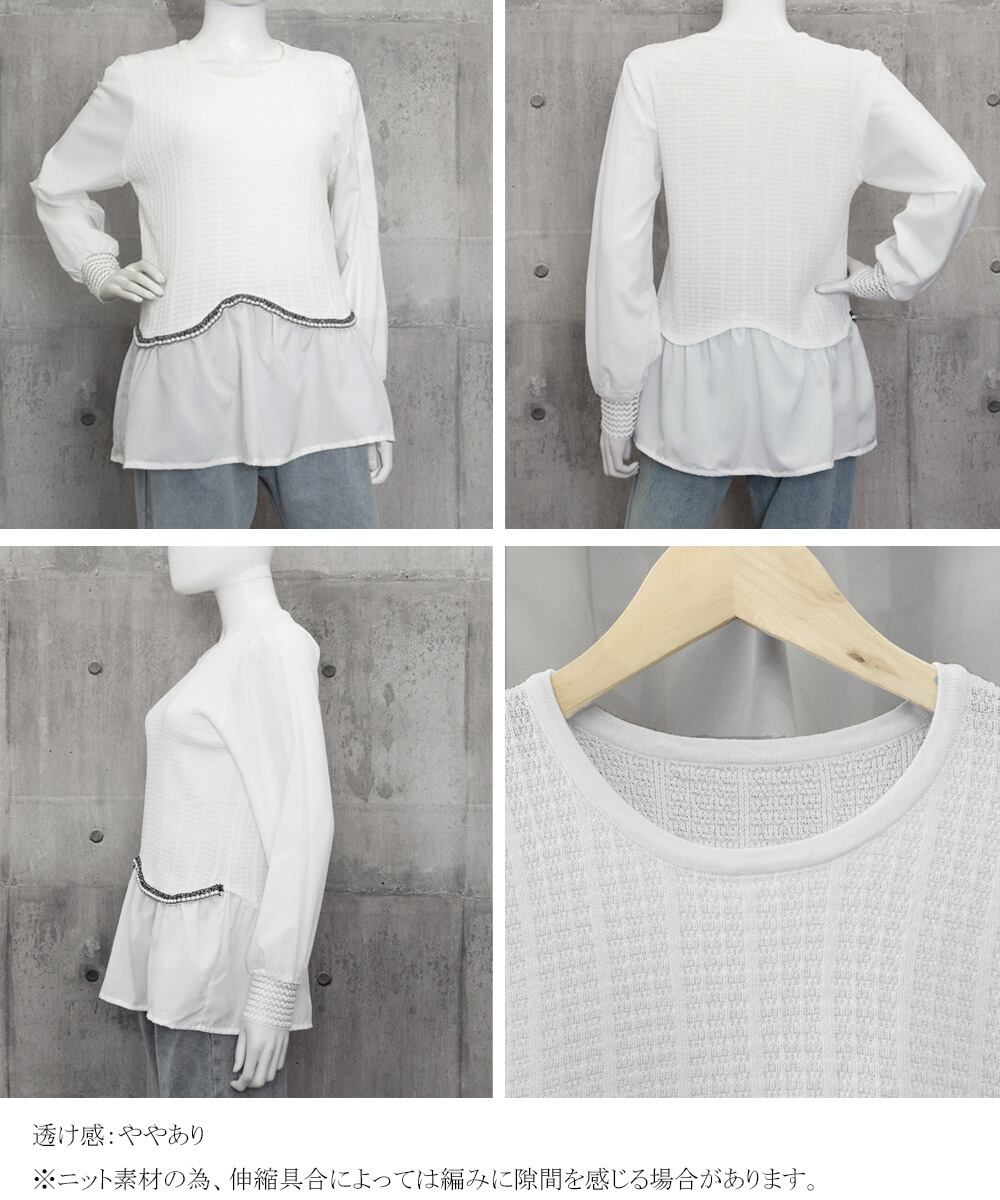 シャツブラウス 異素材 トップス 長袖