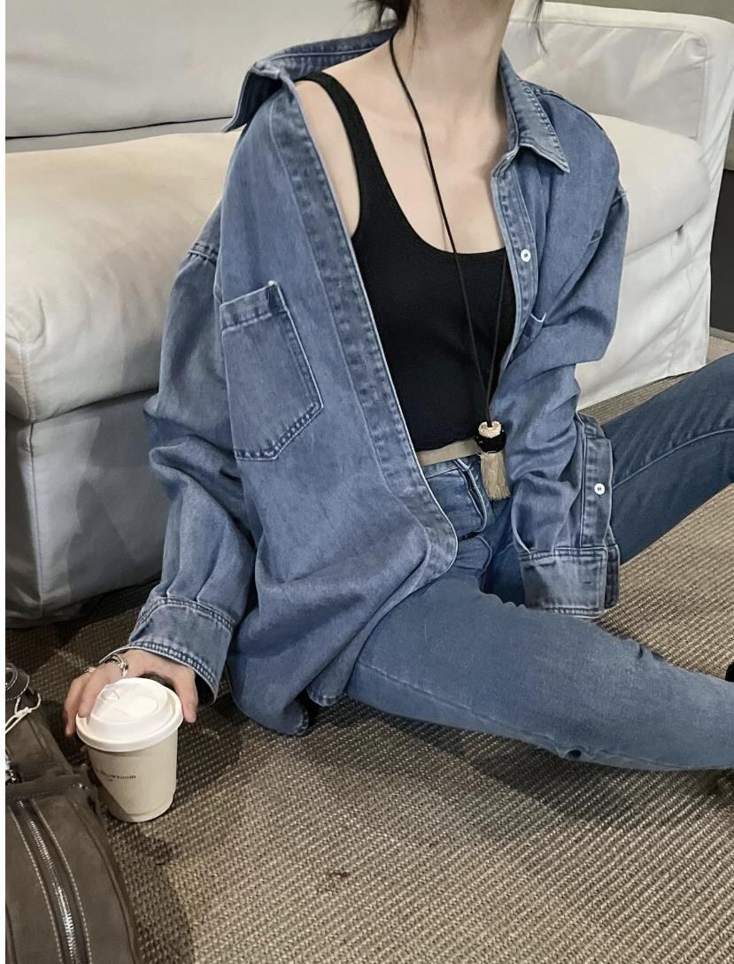 レディース トッブス シャツ アウター デニム 長袖 2024秋新作 ブラウス