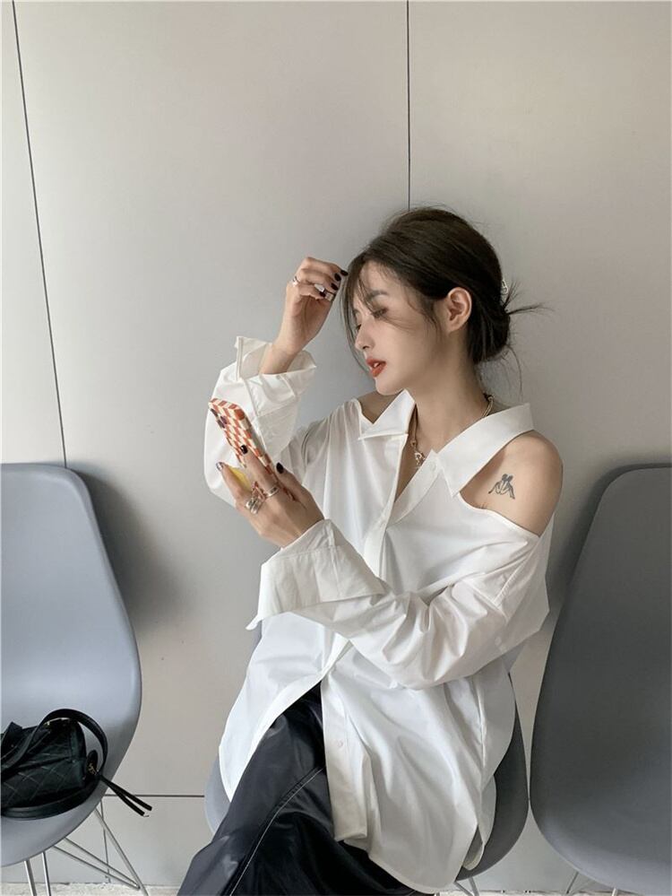 気質の着こなし 上着 オフショルダー トップス ストリート 一言の肩 首掛け上着 長袖 シャツ