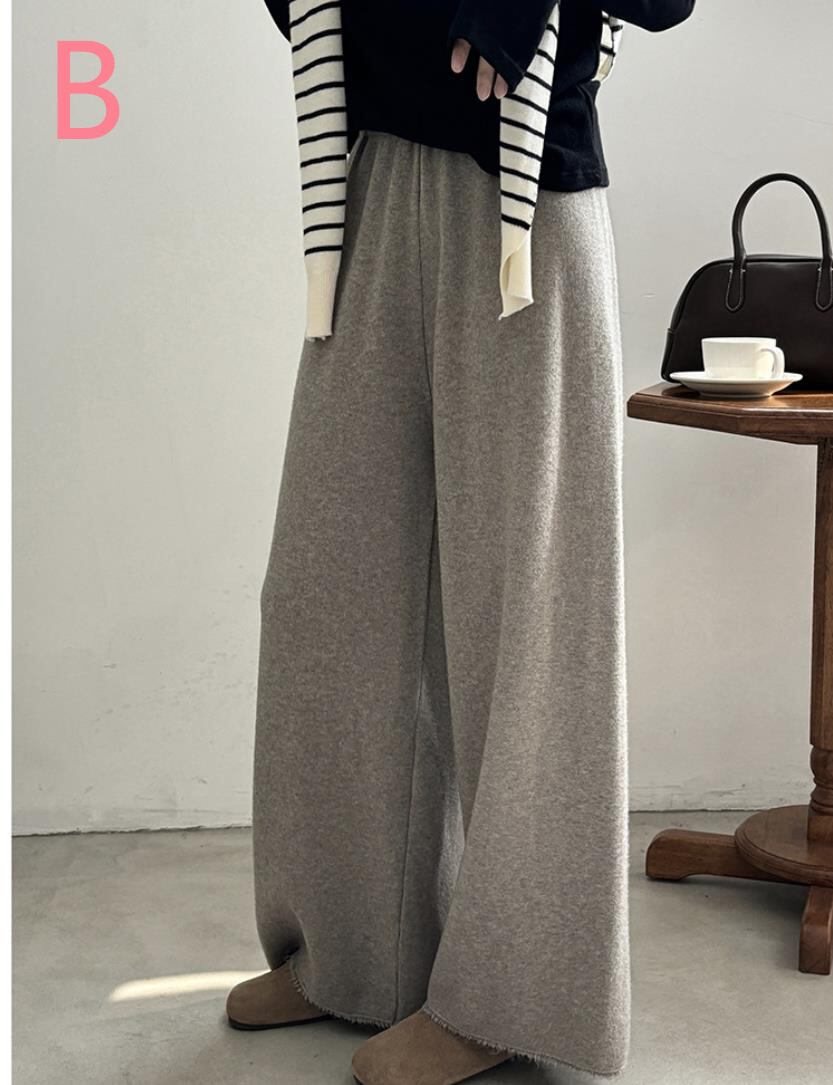 レディース ボトムス ワイドパンツ スラックス ニット ハイウエスト ロング丈 2024秋冬新作