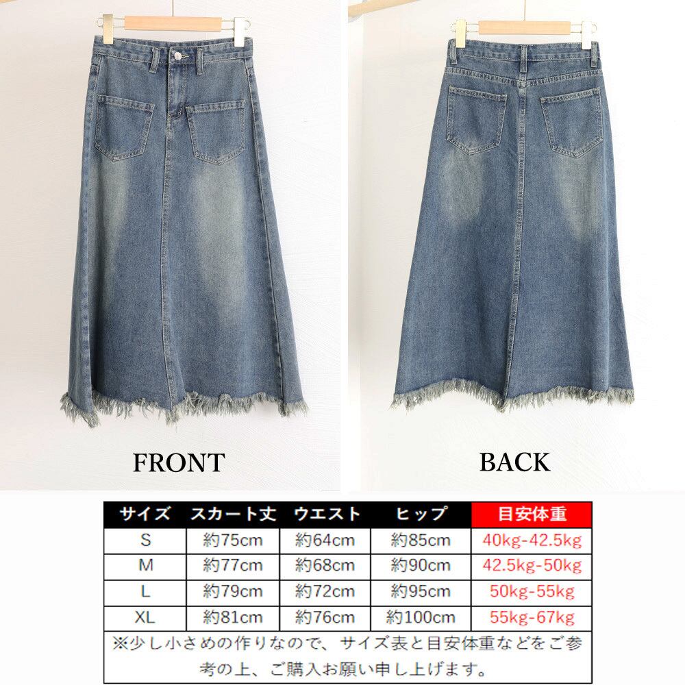 ハイウエスト ロングスカート フリンジ レトロ ブリーチデニム 美脚体型カバー 20代30代40代ボトムス 韓国春夏秋冬