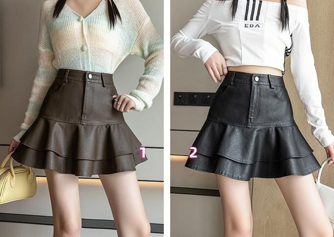 2024秋冬新作 ボトムス 女 レディース ハイウエスト PU ミニスカート
