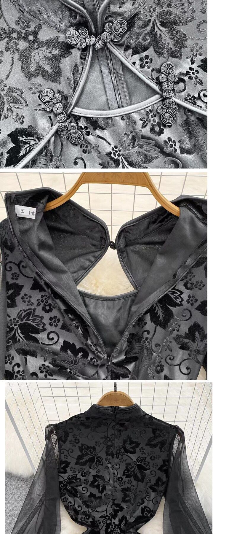 長袖 ロング丈 ストレッチ チャイナドレス パーティードレス